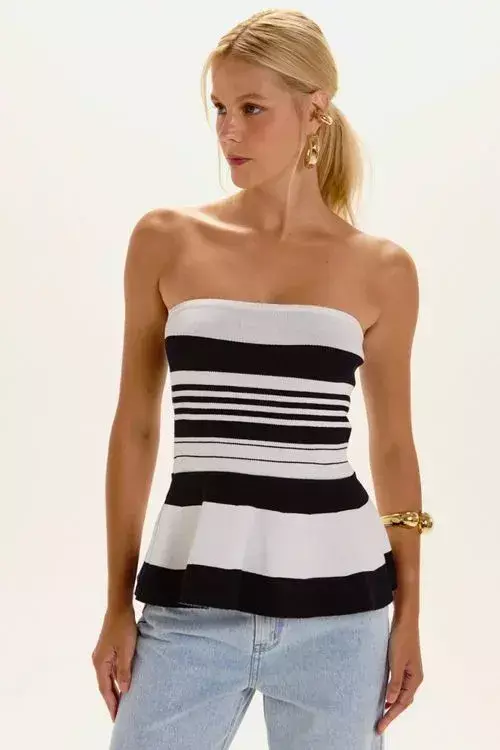 BLUSA DAFNE AZUL MARINHO E OFF WHITE