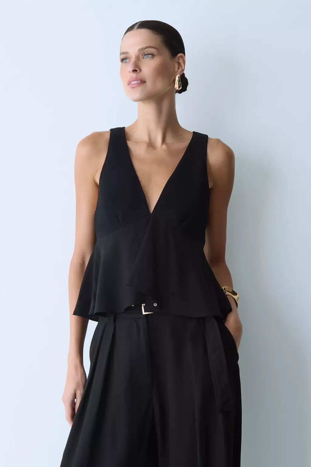 Blusa traz um toque de leveza e feminilidade com seu decote em V e caimento fluido. O ajuste sutil no busto valoriza a silhueta, enquanto a barra ampla cria movimento e elegância. O detalhe frontal adiciona charme delicado à peça, que conta ainda com fechamento por zíper invisível nas costas. Uma escolha sofisticada e atemporal para compor looks elegantes e descomplicados.