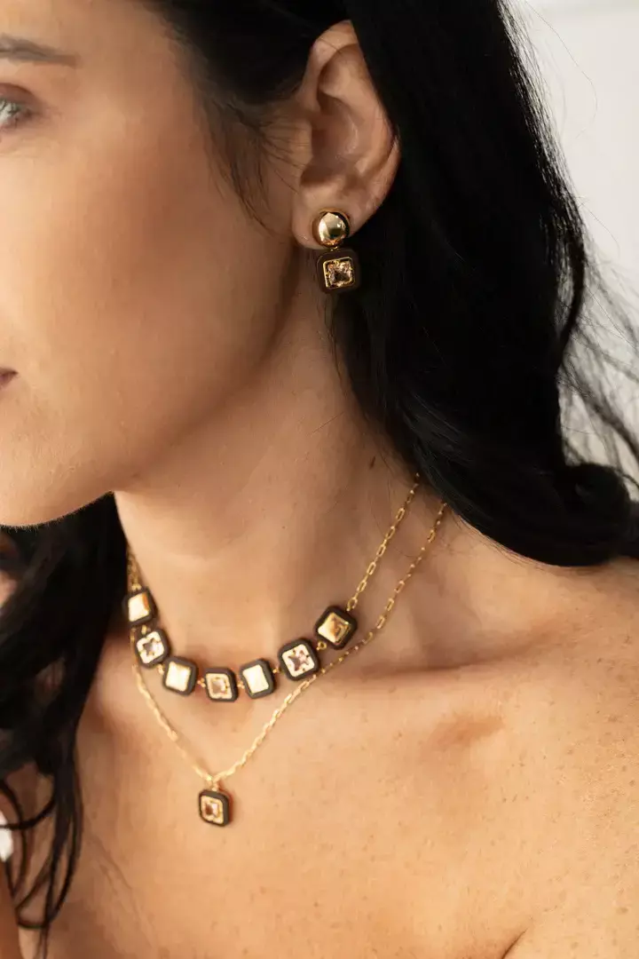 COLAR CHOKER AMOUR QUADRADO RESINADO MARROM ZIRCÔNIA - 30 cm