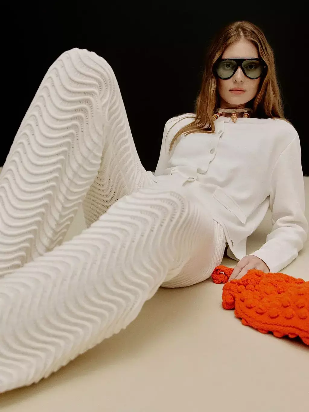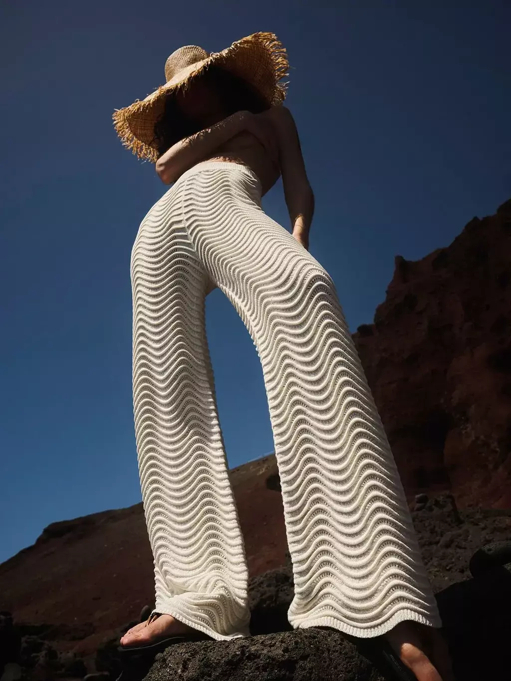 Livre, leve e solta. A calça em ponto ondas traz a fluidez das águas para os looks de verão. Com modelagem ampla e cintura elástica, a peça valoriza a silhueta com frescor, conforto e um toque extra de personalidade.