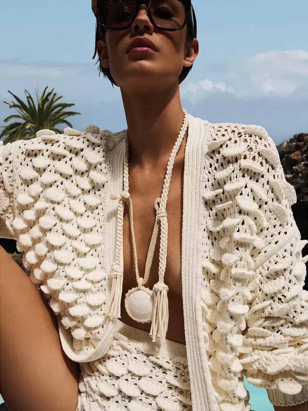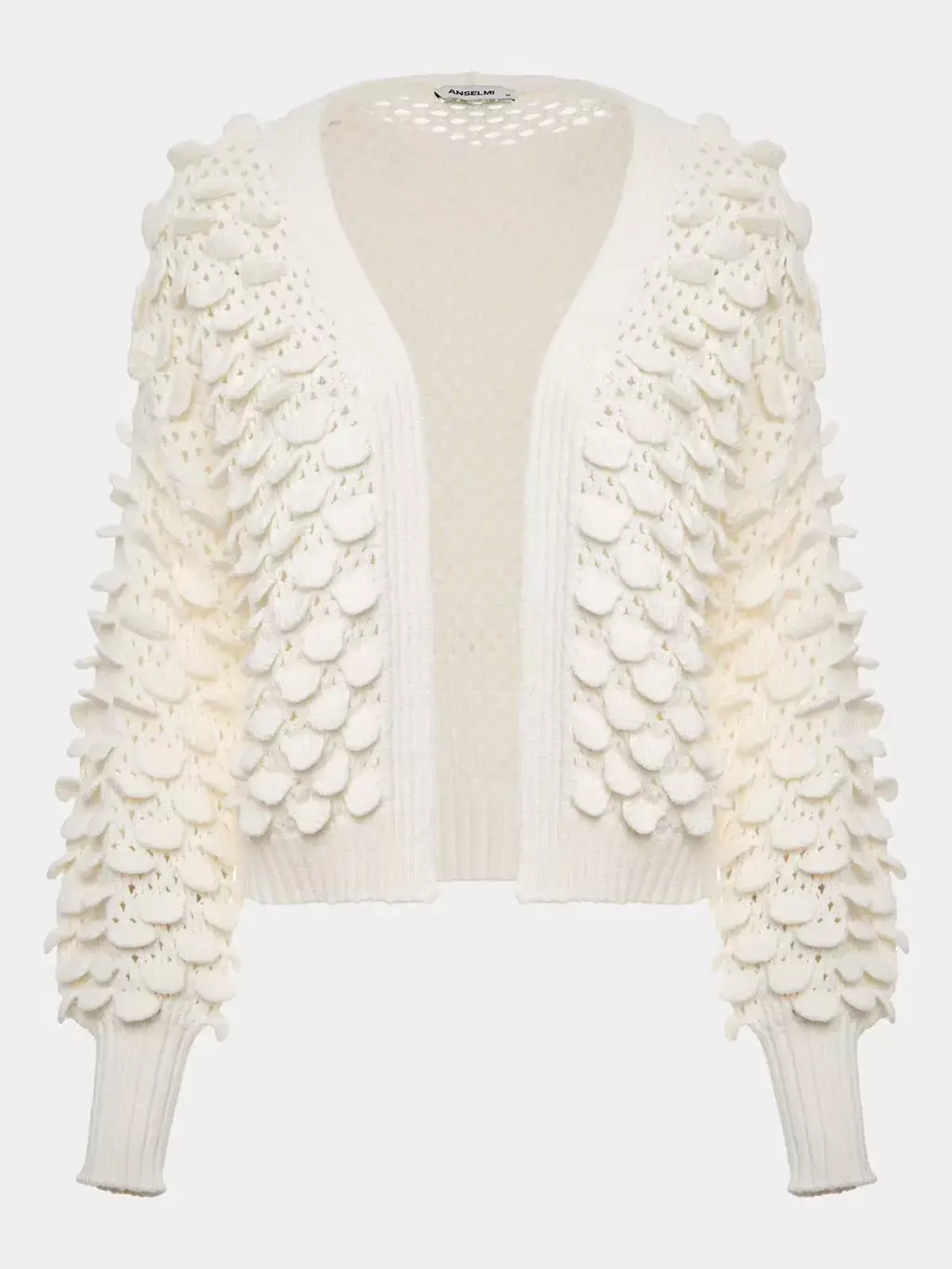 Textura Que Encanta Ao Toque. o Casaco em Ponto Concha Traz Relevos Inspirados Nas Formas Marinhas, Adicionando Volume e Movimento à Trama. com Modelagem Ampla, Decote em V e Mangas Longas com Punhos Ajustados, a Peça de Comprimento Médio é Perfeita para Criar Sobreposições com Um Toque Artesanal.