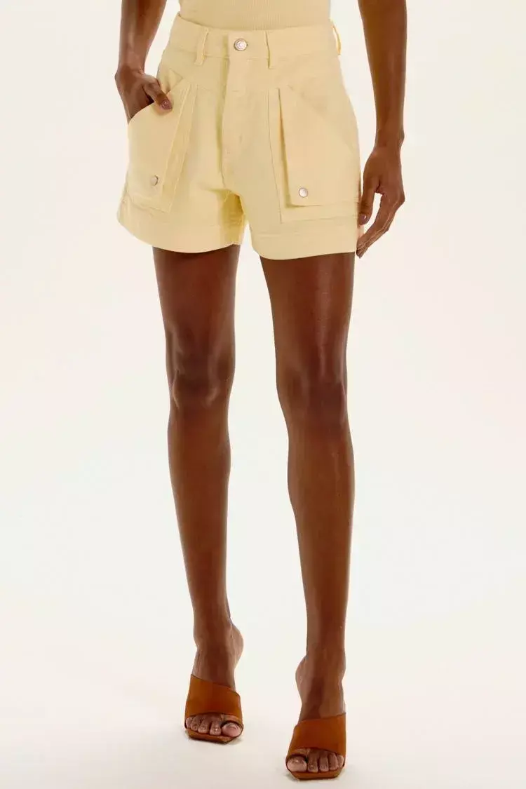 O Shorts Sarja Lara é confeccionado em sarja de algodão na cor exclusiva Le Blog, com pala dupla no cós e acabamento em pesponto duplo, que garante durabilidade e estilo. Conta com bolso aplicado com pregas e botões de enfeite na parte frontal, além de bolsos nas costas, proporcionando charme e praticidade.